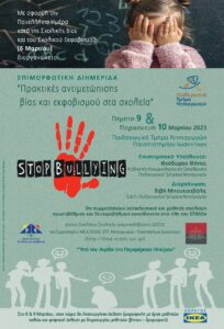 Στο πλαίσιο της Παγκόσμιας Ημέρας για τον Σχολικό Εκφοβισμό, στις 6 Μαρτίου, το Δίκτυο Σχολείων Σχολικής Διαμεσολάβησης (ΔΣΣΔ) του Παιδαγωγικού Τμήματος Νηπιαγωγών (ΠΤΝ) του Πανεπιστημίου Ιωαννίνων διοργάνωσε έκθεση με έργα μαθητών/τριών από σχολεία Πρωτοβάθμιας και Δευτεροβάθμιας Εκπαίδευσης από όλη τη χώρα. Παράλληλα, προβλήθηκαν βίντεο των μαθητών/τριών σχετικά με τον Σχολικό Εκφοβισμό και ακολούθησε συζήτηση.