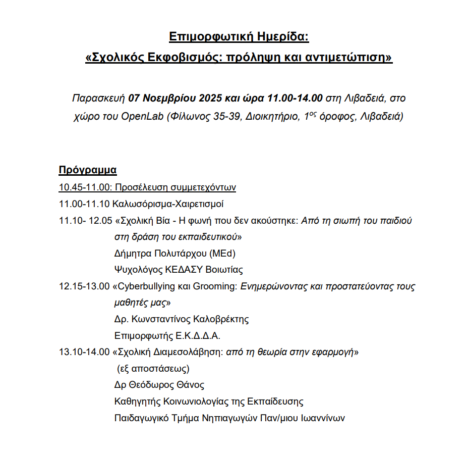 Πανελλήνιο Συνέδριο Σχολικής Διαμεσολάβησης 27-29 Μαρτίου 2026